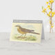 This design features a representation of a bird with feathers coloured various shades of brown, standing on the ground. It also features customisable messages on the front and the inside.
