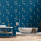 Brown Floral Line Art on Blue Ocean: Peel & Stick Wallpaper