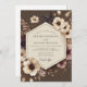 This design features a moody, autumnal floral arrangement in rich brown and cream tones. Delicate blossoms with dark centers create an ethereal and romantic atmosphere, perfect for a sophisticated celebration. The natural elements evoke a sense of twilight charm.