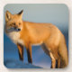 Brown Fox Beverage Coaster. Beautiful photo of a brown fox on a snow field. Lanoka Harbour, Berkeley Township. A great gift for any fox lover. Photo by Ray Hennessy.
