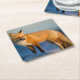 Brown Fox Square Paper Coaster. Beautiful photo of a brown fox on a snow field. Lanoka Harbour, Berkeley Township. A great gift for any fox lover. Photo by Ray Hennessy.