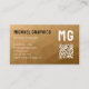 Brown geometric mesh pattern QR code Monogram Business Card