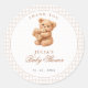 Brown Gingham Teddy Bear Neutral Baby Shower Paper Classic Round Sticker