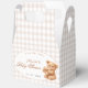 Brown Gingham Teddy Bear Neutral Baby Shower Paper Favour Box