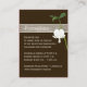 This romantic double-sided brown, green, and ivory wedding reception enclosure card has a white Bleeding Heart flower stem with leaves on it that matches the wedding invitation shown below. The text is customisable. You can use it as a wedding website card, a directions card, and accommodations card, a wishing well or charity favour card, or a gift registry card. ***PLEASE NOTE that if you change the font or size of the font, it may alter how your card prints. It will print the way you see it on your monitor, so if you have alignment issues, or sizing problems, please contact me for help. I will not see your card once you order it, and Zazzle will NOT edit anything (typos, alignment, etc.). If you require assistance or would like any other matching items, please email your request to niteowlstudio@gmail.com.