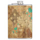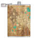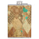 Brown Grunge Quilt Stars Hearts Hip Flask