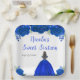 This sweet sixteen plate features faux glitter royal blue floral flowers and a beautiful princess with brown hair and an elegant dress. This is perfect for a sweet sixteen birthday party.