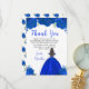 This sweet sixteen thankyou card features faux glitter royal blue floral flowers and a beautiful princess with brown hair and an elegant dress. This is perfect for a sweet sixteen birthday party.