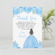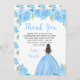 Brown Hair Princess Blue Floral Sweet Sixteen Thank You Card