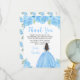 This sweet sixteen thankyou card features faux glitter bright blue floral flowers and a beautiful princess with brown hair and an elegant dress. This is perfect for a sweet sixteen birthday party.