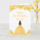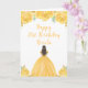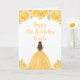 Brown Hair Princess Gold Floral Birthday Party Card