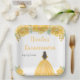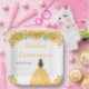 This Quinceanera plate features faux glitter gold floral flowers and a beautiful princess with brown hair and an elegant dress. This is perfect for a Quinceanera birthday party.