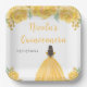 Brown Hair Princess Gold Floral Quinceanera Paper Plate