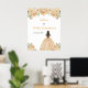 This Quinceanera welcome poster features faux glitter champagne peach cream floral flowers and a beautiful princess with brown hair and an elegant dress. This is perfect for a Quinceanera birthday party.