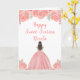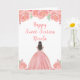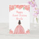 This sweet sixteen birthday card card features faux glitter pink floral flowers and a beautiful princess with brown hair and an elegant dress. This is perfect for a sweet sixteen birthday party.