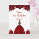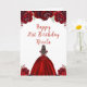 This birthday card features faux glitter red floral flowers and a beautiful princess with brown hair and an elegant dress. This is perfect for a birthday party.