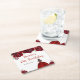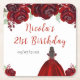 This birthday coaster features faux glitter red floral flowers and a beautiful princess with brown hair and an elegant dress. This is perfect for a birthday party.