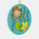 A brown haired smiling mermaid and yellow starfish swim among the seaweed, a design that's cute and colourful for girls who love the ocean and mermaids! Mermaid T-shirts, bodysuits, bibs, blankets, burp cloths, cards, stickers, bags, mugs, key chains, pillows, wall clocks, and lots of other mermaid gear!