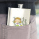 The product is a good size and came exactly as it was pictured. The lid is not attached to the flask, which could be dangerous on drunken nights... The print came out surprisingly well and looks very sharp. Would definitely recommend.