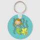 A brown haired smiling mermaid and yellow starfish swim among the seaweed, a design that's cute and colourful for girls who love the ocean and mermaids! Mermaid T-shirts, bodysuits, bibs, blankets, burp cloths, cards, stickers, bags, mugs, key chains, pillows, wall clocks, and lots of other mermaid gear!