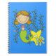 A brown haired smiling mermaid and yellow starfish swim among the seaweed, a design that's cute and colourful for girls who love the ocean and mermaids! Mermaid T-shirts, bodysuits, bibs, blankets, burp cloths, cards, stickers, bags, mugs, key chains, pillows, wall clocks, and lots of other mermaid gear!