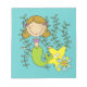 A brown haired smiling mermaid and yellow starfish swim among the seaweed, a design that's cute and colourful for girls who love the ocean and mermaids! Mermaid T-shirts, bodysuits, bibs, blankets, burp cloths, cards, stickers, bags, mugs, key chains, pillows, wall clocks, and lots of other mermaid gear!