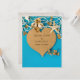 brown paper heart with starfish and seashells in net on turquoise painted wood