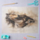 A watercolor painting of a brown horse galloping captures the majestic beauty and strength of this beautiful animal.