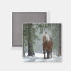 Brown Horse in a Winter Forest with Snow Falling Magnet
