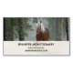Magnetic business cards with a photograph of a brown horse with a long white scruffy mane. Standing in a forest with snowflakes falling all around.