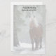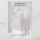 Stationery paper with a photograph of a brown horse with a long white scruffy mane. Standing in a forest with snowflakes falling all around.