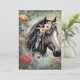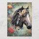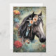 A horse's head with a lush mane. A beautiful brown horse among flowers.