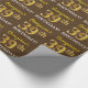 This wrapping paper design features a message like "Georgiana’s 39th BIRTHDAY!", with the "39th" having a faux/imitation gold-like colour appearance. The name can be customised, and the background is coloured brown. It could perhaps be used when wrapping gifts being given for somebody’s thirty ninth birthday. [~Z0000180]