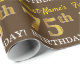 This wrapping paper design features a message like "First-Name’s 75th BIRTHDAY!", with the "75th" having a faux/imitation gold-like colour appearance. The name can be personalised, and the background is coloured brown. It could perhaps be used when wrapping gifts being given for somebody’s seventy fifth birthday. [~Z0000180]