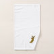 Bath towel set, consisting of a face cloth, hand towel and bath towel with a kangaroo design. You can customise this bath towel set with any text of your choice. Should you require any help with customising then contact us through the message link on this page. Kangaroo design bathroom towel set