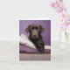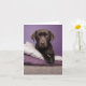 In the modern age of technology there is nothing sweeter than to receive a personalised handwritten note from friends and family. This canine note card features an image of a brown Labrador Retriever puppy dog resting on a pile of pillows highlighted by a purple background. Inside is blank for your personal message.