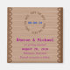A blend of feminine and rustic, this unique save the date magnet features brown lace against a wooden background and the wedding details written in navy and magenta.
