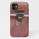 iPhone 5 Barely There case with a look of a front of a brown leather portfolio, with a clasp. Customisable.