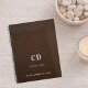 A brown faux leather photo as background and white text. Personalise and add your monogram initials, name and a title year.