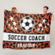 Brown Leopard Print Soccer Coach Name Fleece Blanket