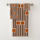 This towel set has a geometric design of five lines with two boxes on top repeated over the design.