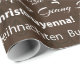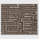 This tree features Merry Christmas expressed in different languages including Spanish, German, Italian, Filipino and Cantonese. The background is a rustic brown snowflake pattern.