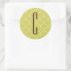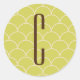 Brown Monogram on Retro Green Pattern Classic Round Sticker