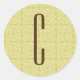 Brown Monogram on Retro Sage Green Pattern Classic Round Sticker