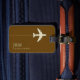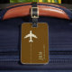A simple and elegant item with the graphic image of an aeroplane on dark brown background, with your name and initials... to identify your luggage at the airport.