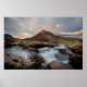 BROWN MOUNTAIN NEAR BODY OF WATER UNDER CLOUDY SKY POSTER