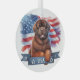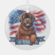 Brown Newfie Patriotic Round Glass Ornament