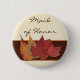 This brown, orange, and ivory dried autumn leaves (IMAGES) Maid of Honour wedding party button matches the fall wedding invitation shown below. The text is customisable and so is the shape and size of the button. ****PLEASE note that if you change the shape to the round button that text and/or design may get cut off. It will print as it appears on your monitor, and you must allow addequate space around the edges. If you need anything changed, please email niteowlstudio@gmail.com.