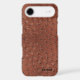 Elegant iPhone 6 Plus case in a rich ostrich leather look, with graphics of a rusty brown coloured ostrich skin leather look. Black text, at the bottom, is ready to personalise for yourself or as a great gift idea.