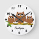This owl design wall clock is a timekeeping device designed to hang on a wall, serving as both a functional tool and a decorative focal point for a room. Made from acrylic and features a pre-installed backside hanging slot for easy hanging and a non-ticking design. You can customise this wall clock with any text of your choice. Should you require any help with customising then contact us through the link on this page. Owl design wall clock